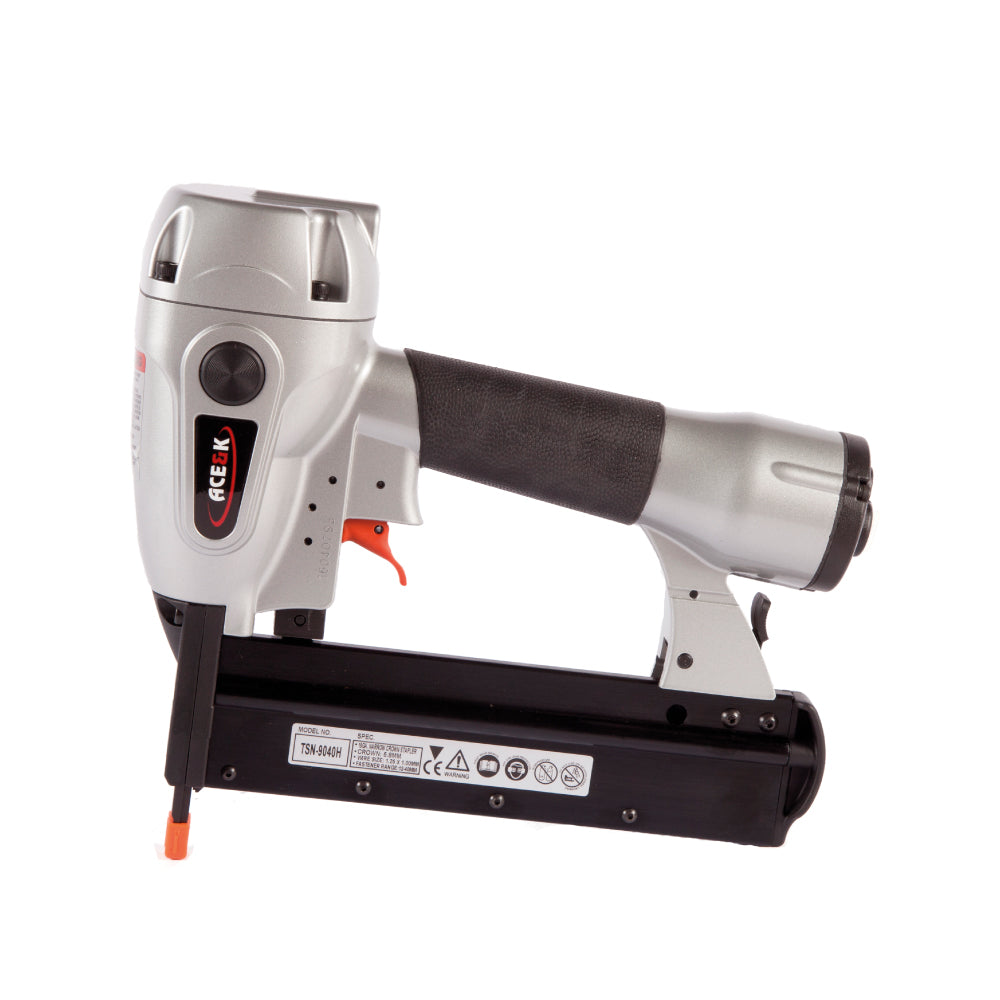 Handle heavy-duty tasks with the Ace & K 90 Series Narrow Crown Stapler TSN-9040H! Driving 13mm to 40mm 90 Series Staples, this stapler excels in cabinet making and flooring, with a rubber handle for comfort. Its adjustable exhaust ensures reliable, fatigue-free performance in busy workshops.
