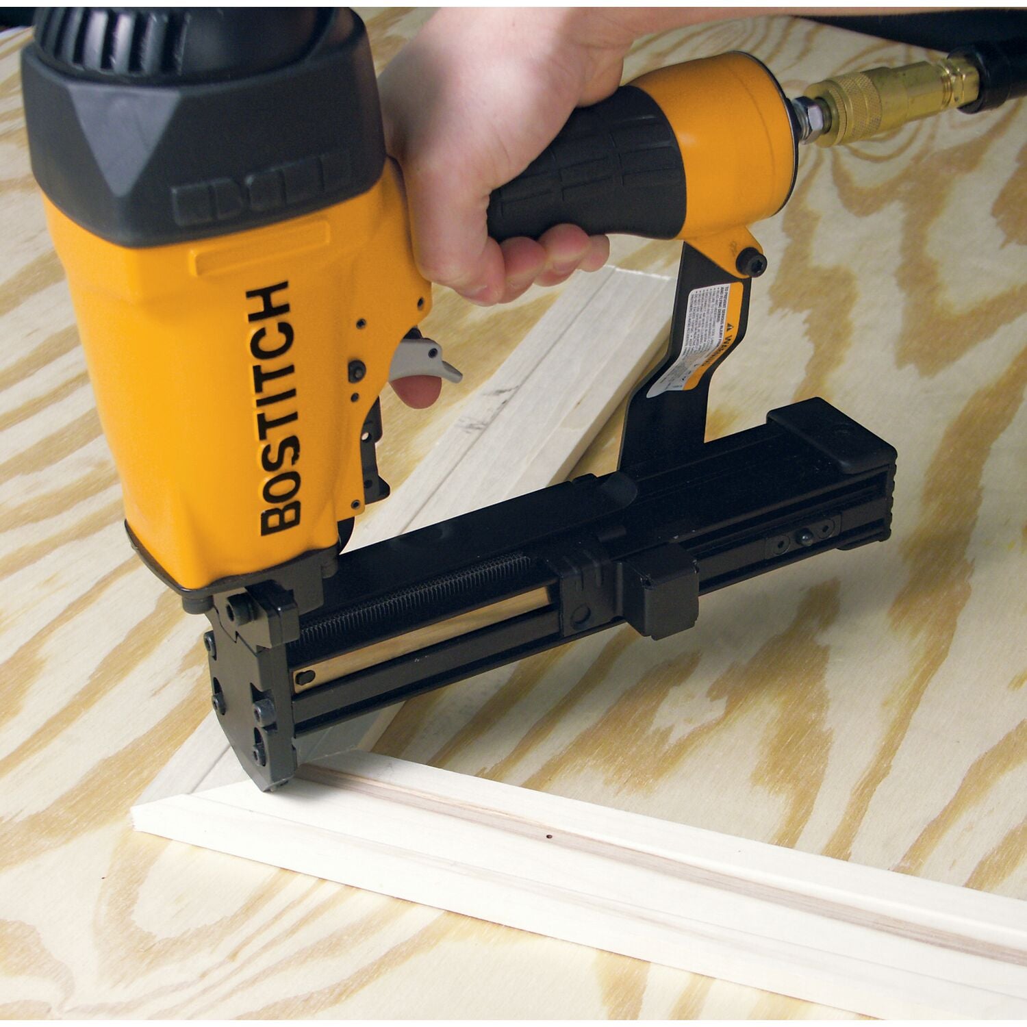 TheBostitch CF15-1-E Corrugated Fastener, ideal for strong butt joints in furniture and sheds. This lightweight pneumatic tool ensures precision and speed, reducing fatigue with its ergonomic grip. Experience durable, reliable fastening, making it a game-changer for professionals and DIYers alike.