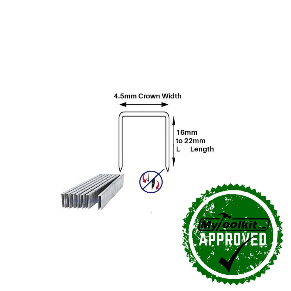 All leg lengths have a Crown Width of 4.5mm, are made from 1.2mm Galvanised Wire and all come in boxes of 5,000 staples.