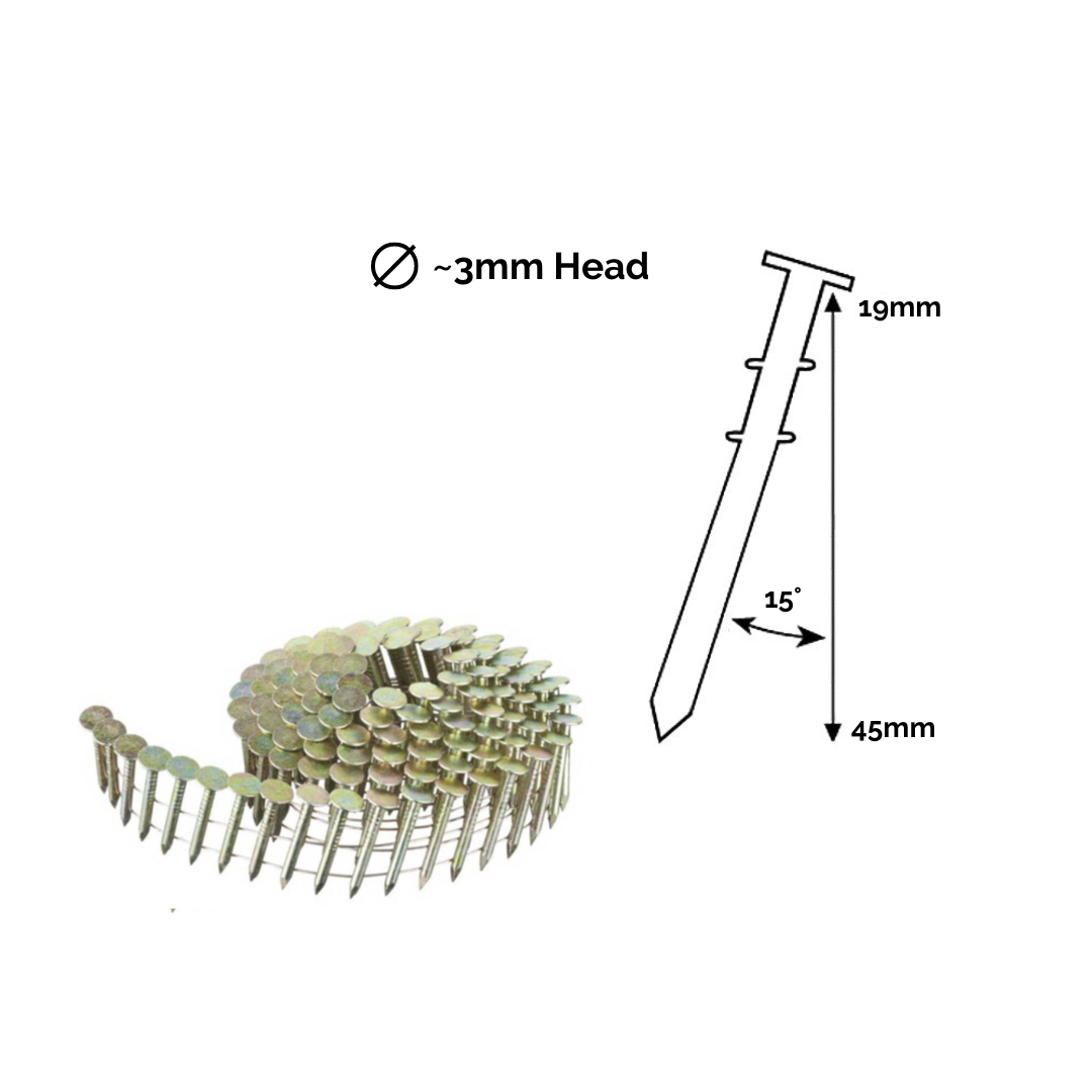 MyToolkit are proud to provide our customers with a range of collated clout roofing nails. These are flat-top wire-collated coil nails that when wound together look like a domed ring, but don’t get them mistaken with the ‘usual’ conical coil nails! The key difference here is the head of the Clout nail. Being 3mm in diameter, they’re some what larger than your typical coil nail making them perfect for roofing applications.