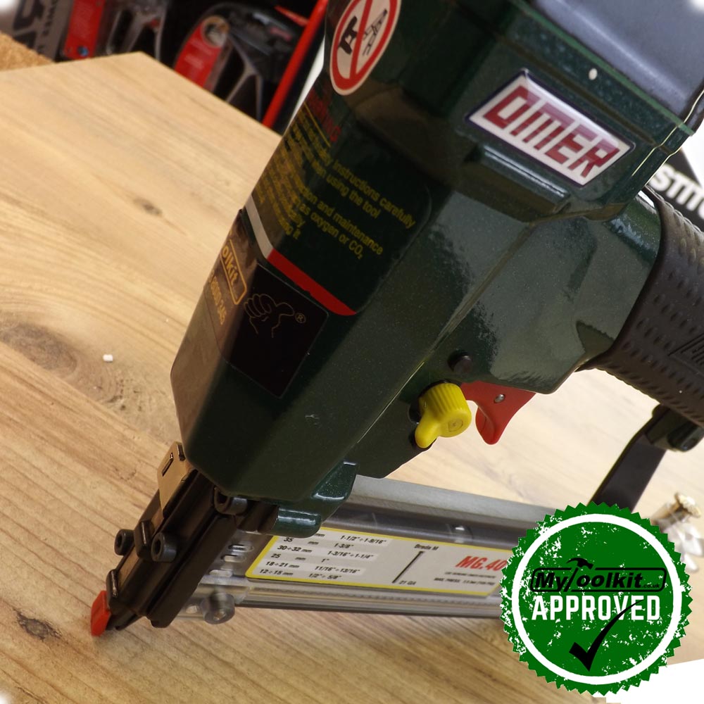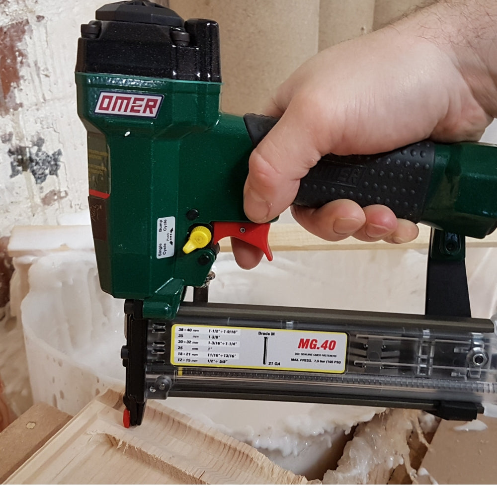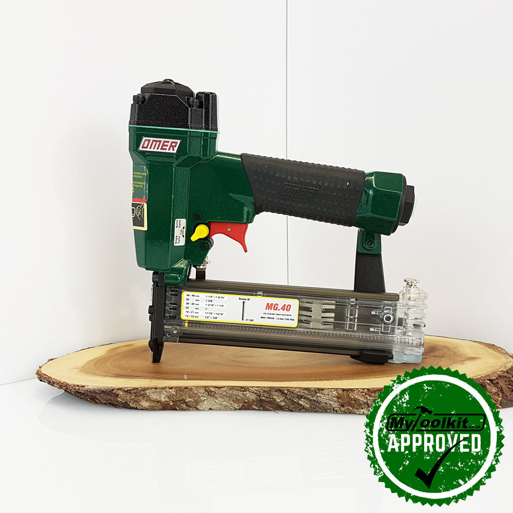 The lightweight MG40 comes with an adjustable depth of drive for flexibility and a dual trigger for extra safety. It also has a comfort grip handle to fight the fatigue. These tools are great for use with rattan furniture, panel assembly, decorative trimming and so much more. Comes with a one-year warranty. Omer is Italian and hand made and everything you would expect from a top notch brand