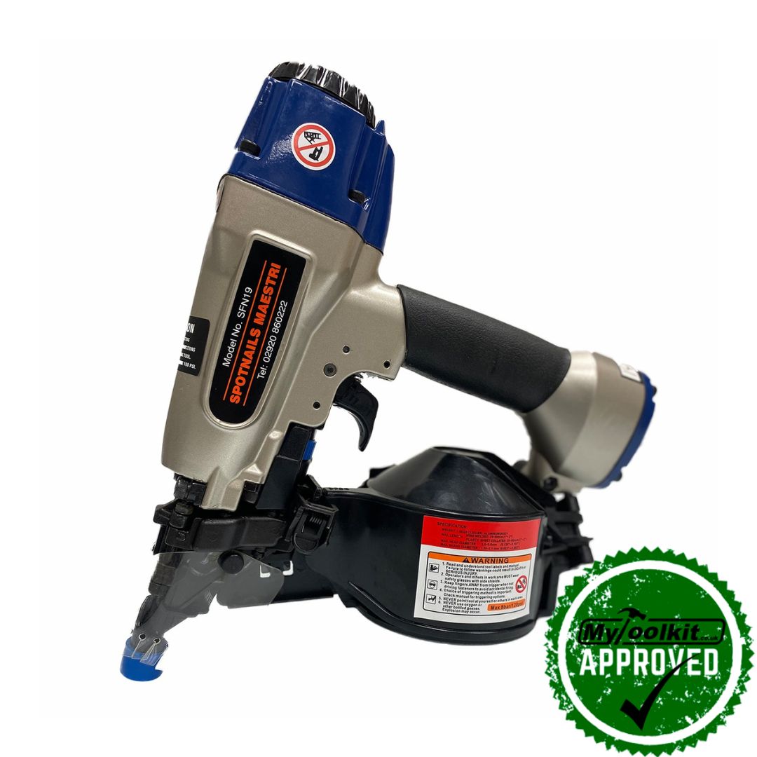 The fast and reliable Spotnails SFN19 Flooring Nailer takes both Plastic Collated Nails (up to 28mm) and Wire Collated Nails (up to 50mm) – available in Stainless Steel too! The 240V/110V Compressor has a dryer and a lubricator built-in and has now been upgraded to an extra silent model – perfect for onsite work!